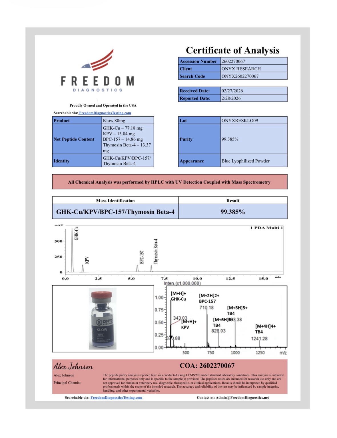 High-purity KLOW peptide for in-vitro laboratory research.